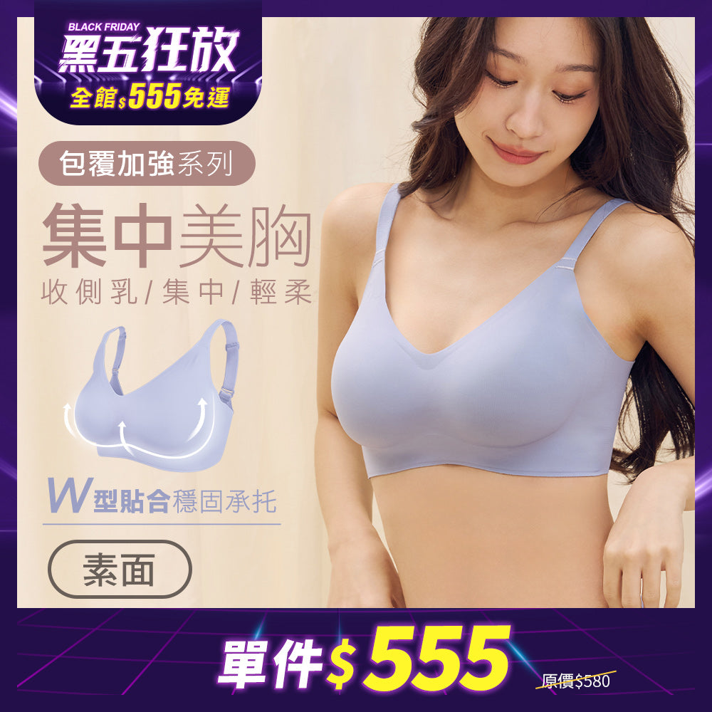 【集中美胸】包覆加強無痕無鋼圈內衣-素面