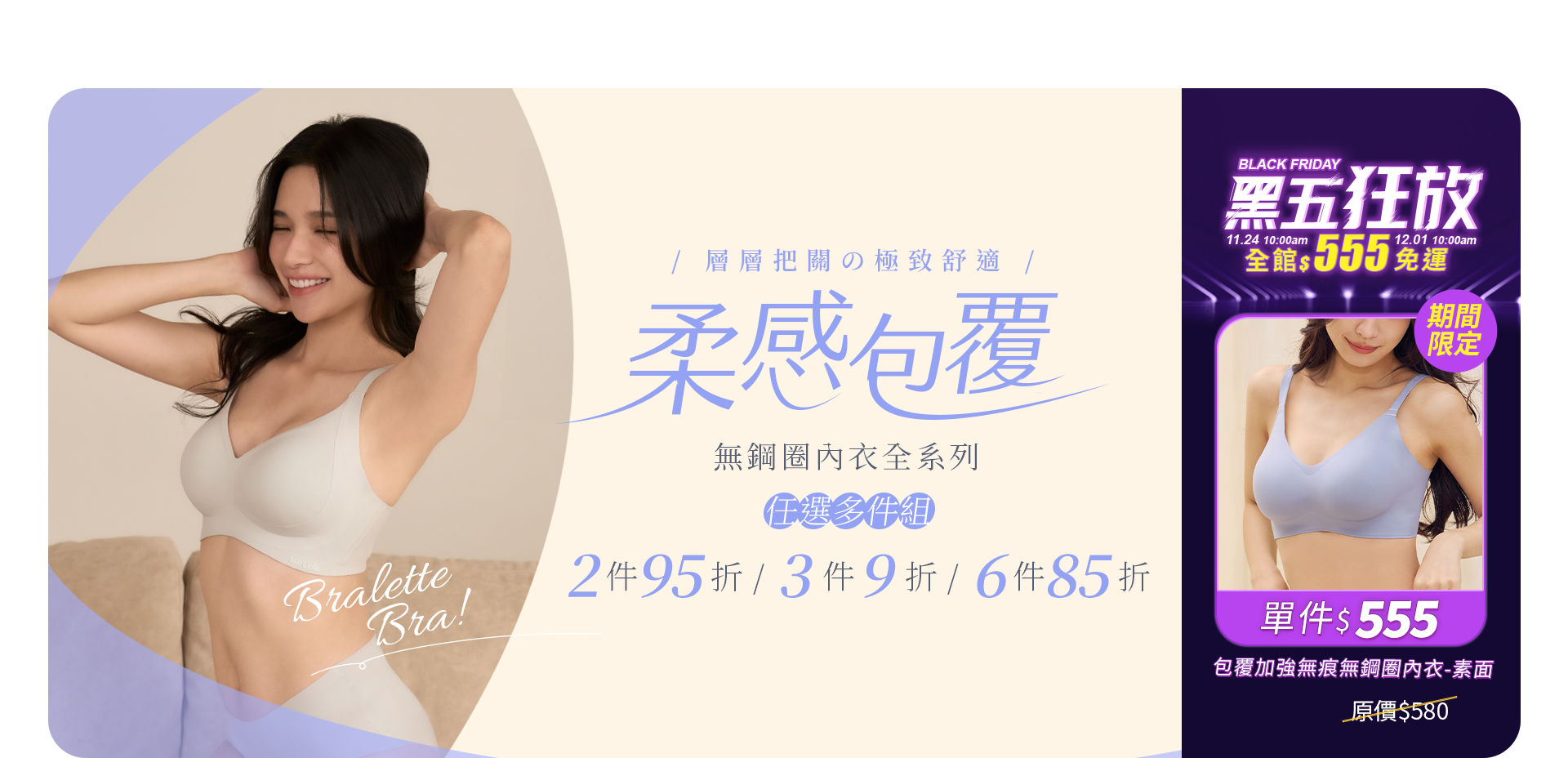 【UU柔托】舒適包覆無痕無鋼圈內衣