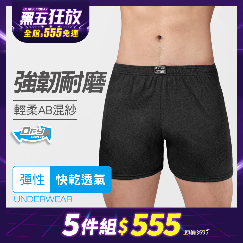 【5件組-黑五限定】針織環保AB紗吸濕平口男內褲