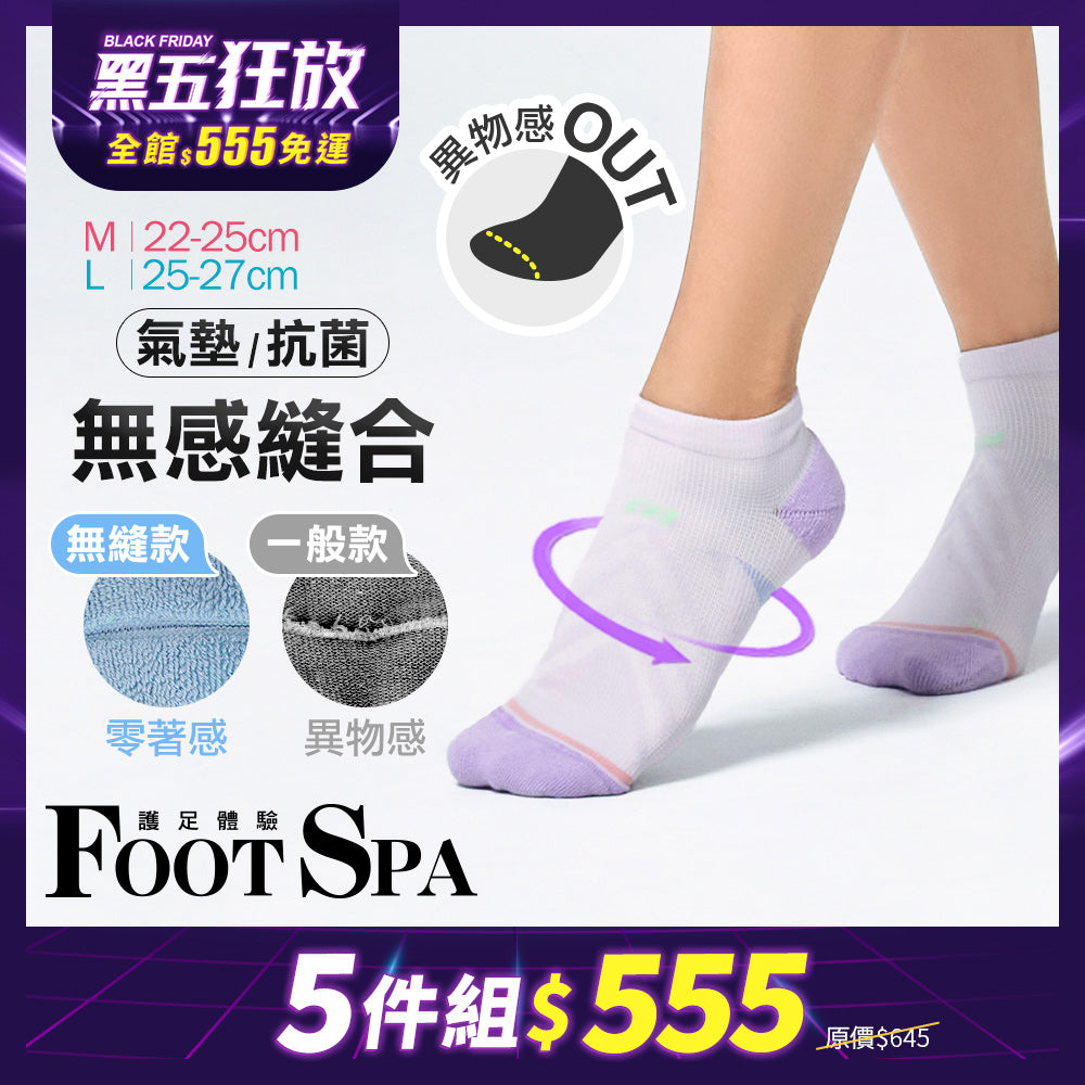 【5雙組-黑五限定】無縫抗菌足弓包覆氣墊除臭襪-踝襪