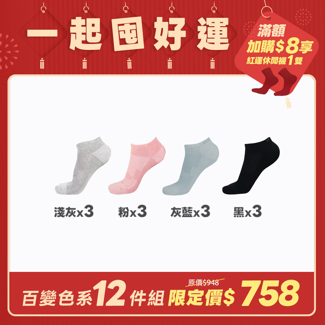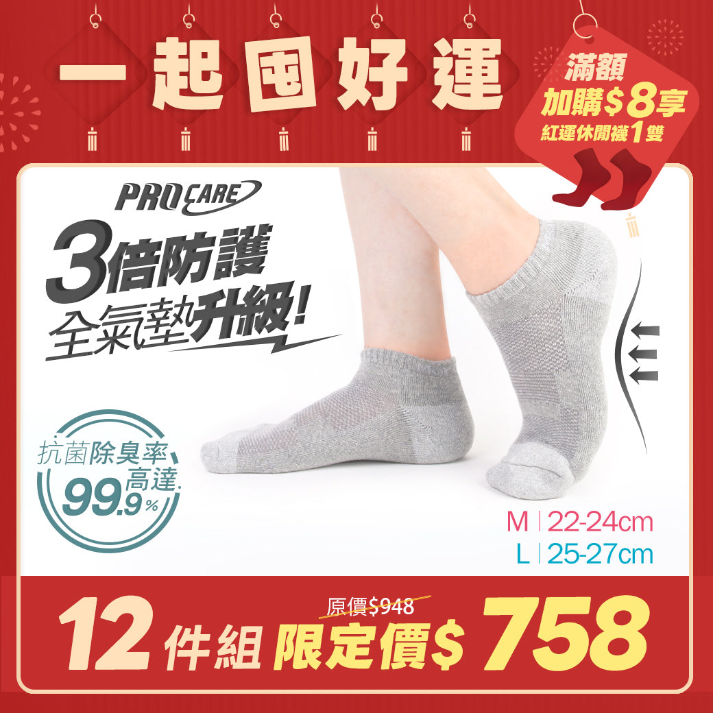 【12雙組-團購】抑菌全氣墊除臭襪-船襪
