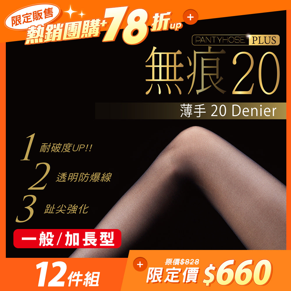 【12雙組-團購】無痕20丹透明防爆線絲襪