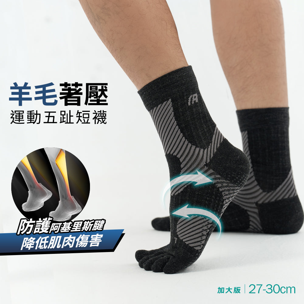 【羊毛襪-五趾款】阿基里斯羊毛機能止滑五趾襪-短襪