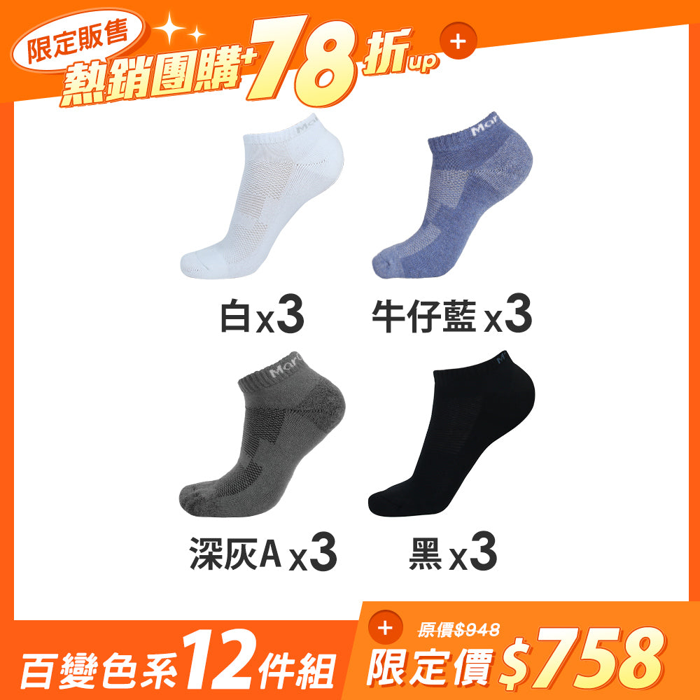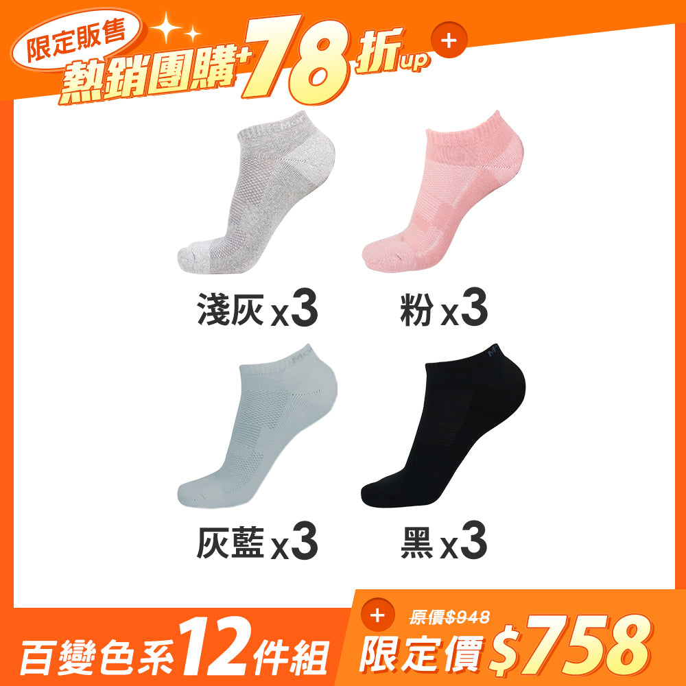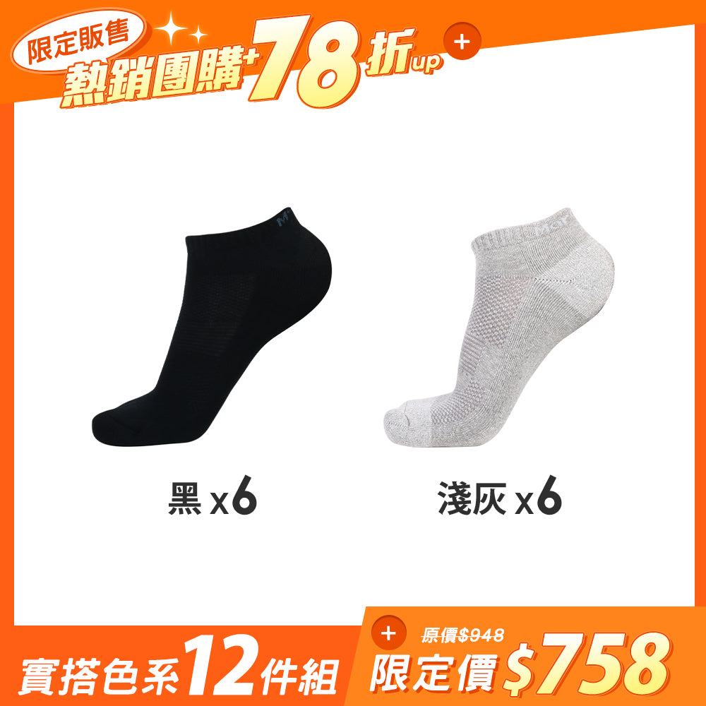 【12雙組-團購】抑菌全氣墊除臭襪-船襪