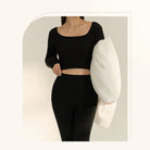 極暖一體成型無縫內裡9分刷毛內搭褲