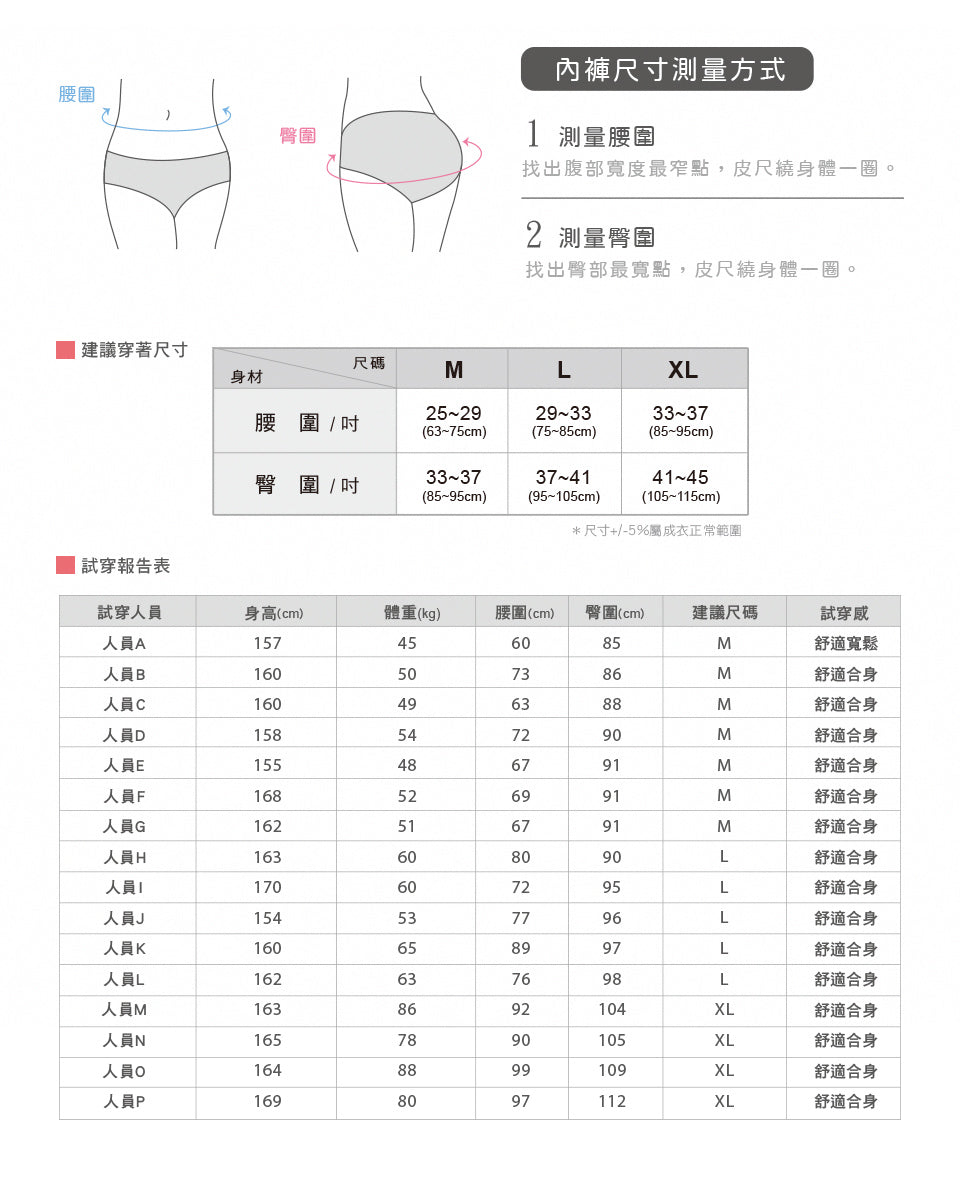 ※提醒您:本產品採用極輕透薄材質,不建議搭配衛生棉或護墊使用,可能因黏著面摩擦或拉扯影響布料結構,造成壽命縮短或破損。
