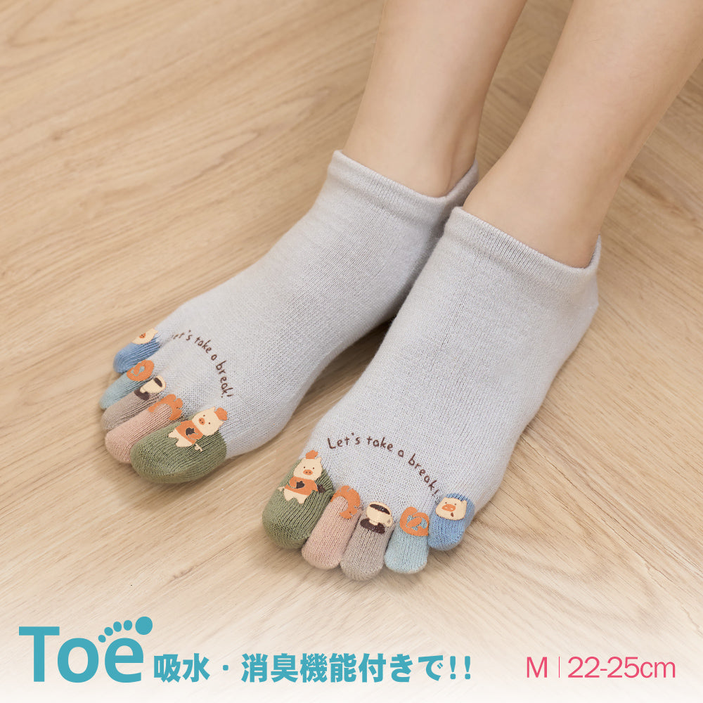 .超繽紛五趾襪膠印烘焙豬圖案
