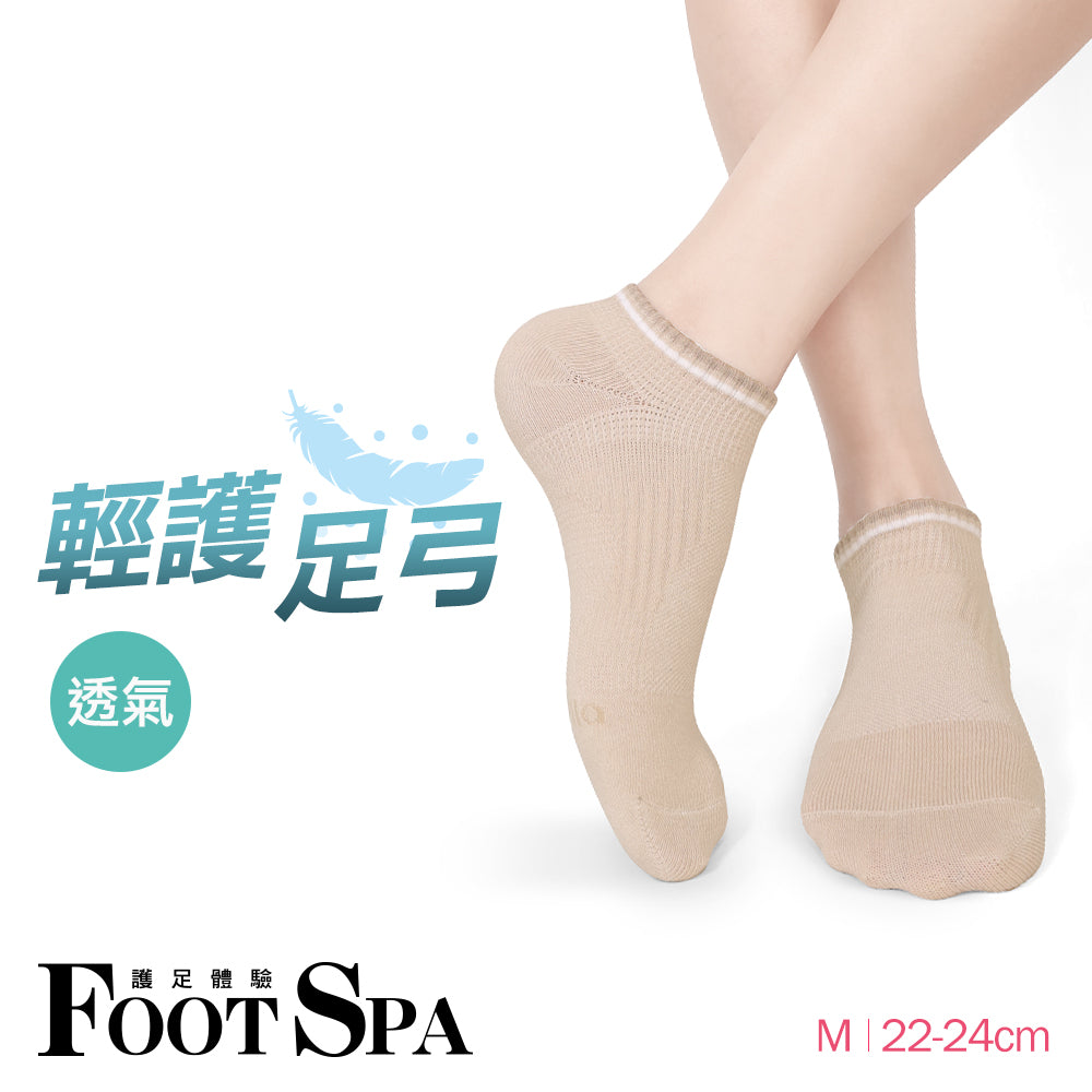 輕護足弓透氣運動船襪-條紋