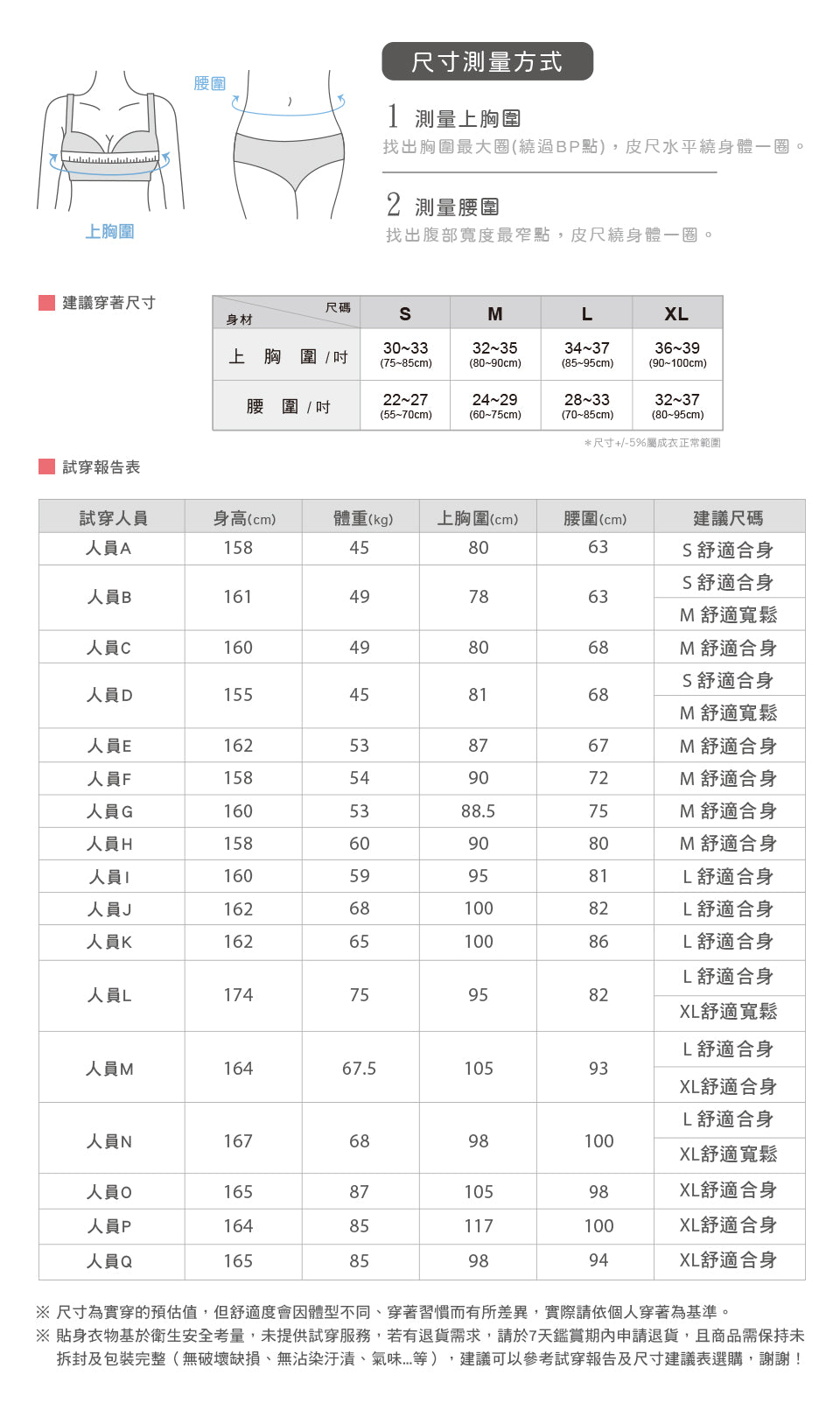 6. 為維持貼身衣物的彈性與舒適,請避免使用【非中性洗劑,例如:酵素洗劑/水晶肥皂/含氯漂白水/小蘇打...等成份】,建議選擇溫和的中性洗劑。首次清洗如有吐色或油感,為正常現象,沖洗乾淨即可安心穿著。