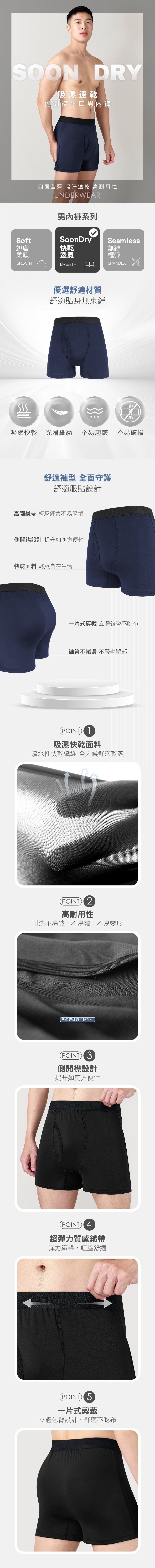 SoonDry吸排織帶側開襟平口男內褲
