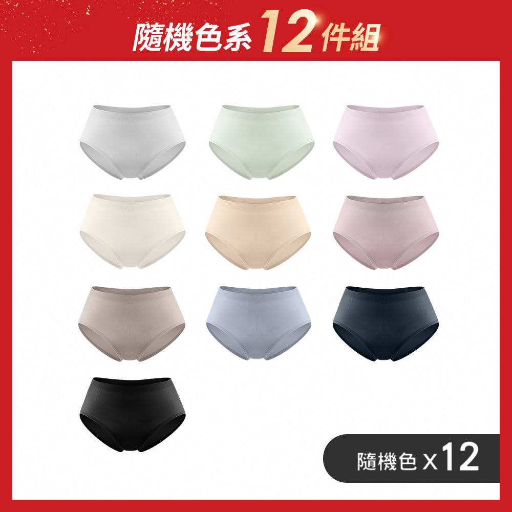 【12件組-週年慶限定】輕薄抗菌緊實包臀無痕內褲-中腰