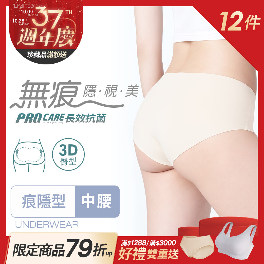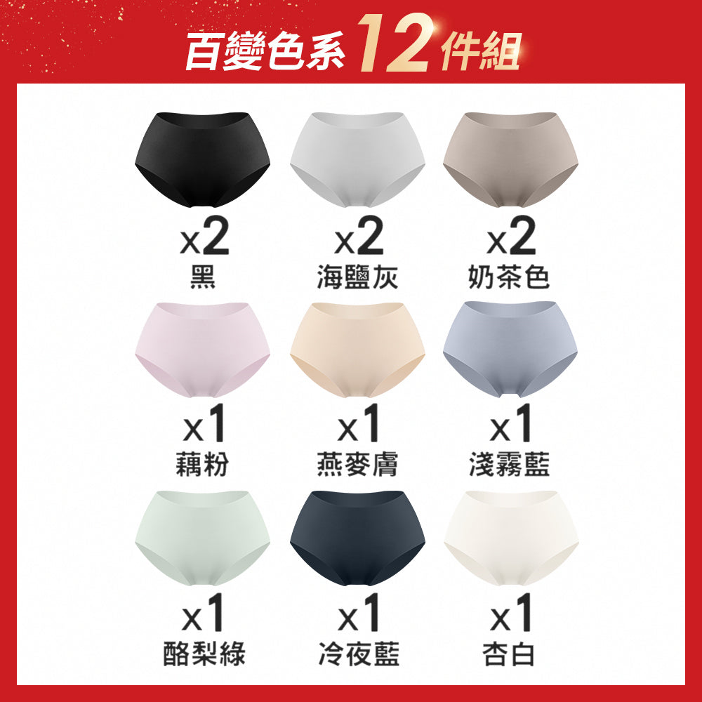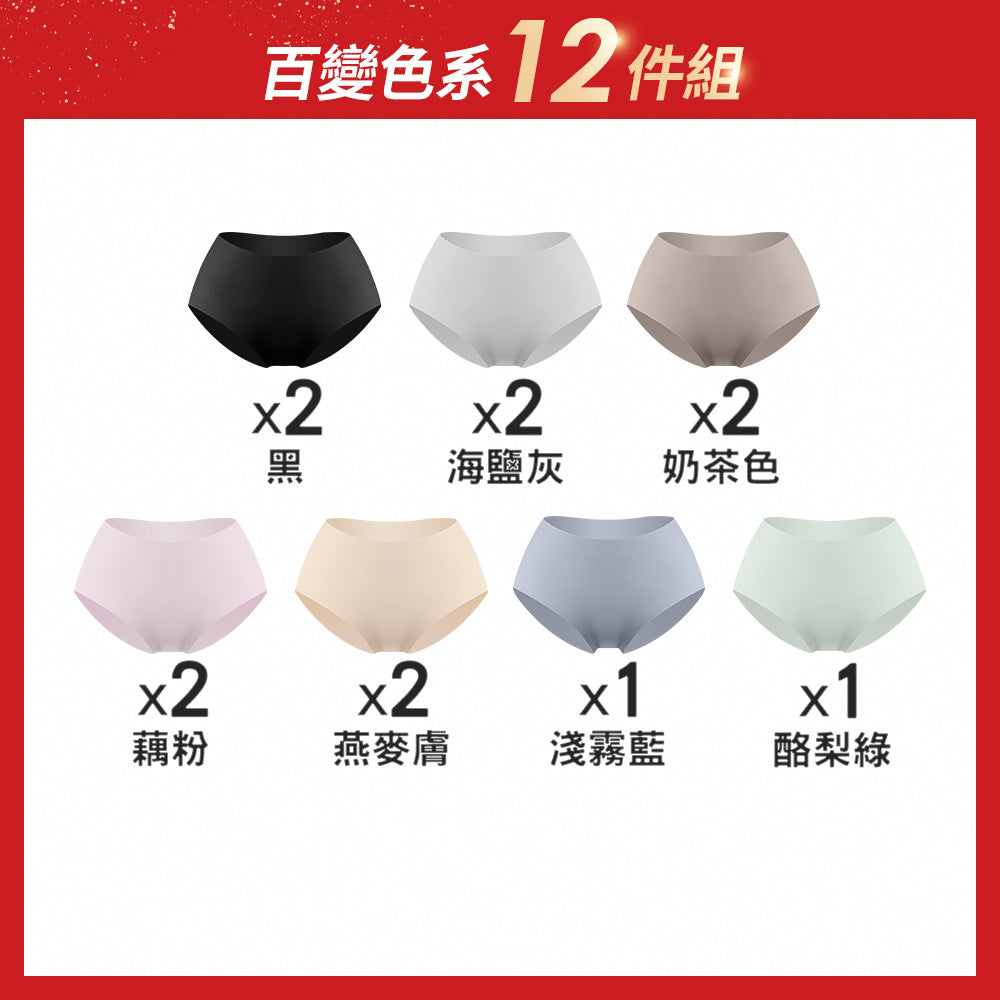 【12件組-週年慶限定】輕薄抗菌完美無痕內褲-中腰