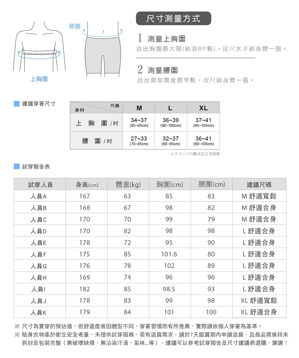 6. 為維持貼身衣物的彈性與舒適,請避免使用【非中性洗劑,例如:酵素洗劑/水晶肥皂/含氯漂白水/小蘇打...等成份】,建議選擇溫和的中性洗劑。首次清洗如有吐色或油感,為正常現象,沖洗乾淨即可安心穿著。
