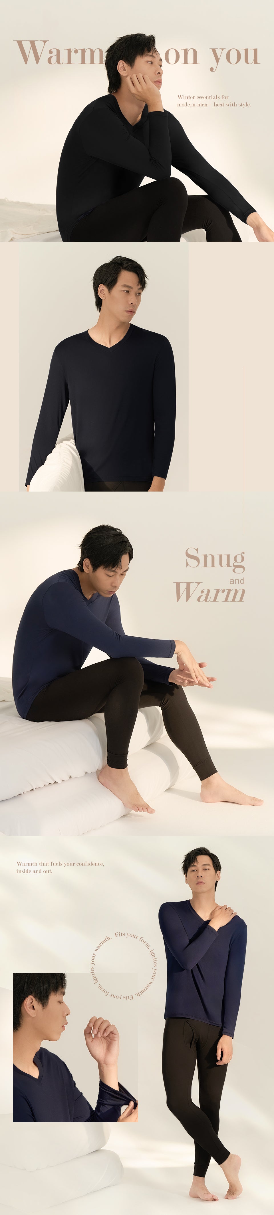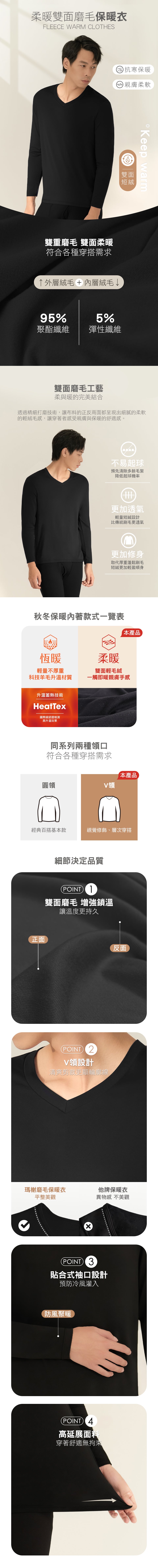 短絨磨毛輕量保暖衣-V領