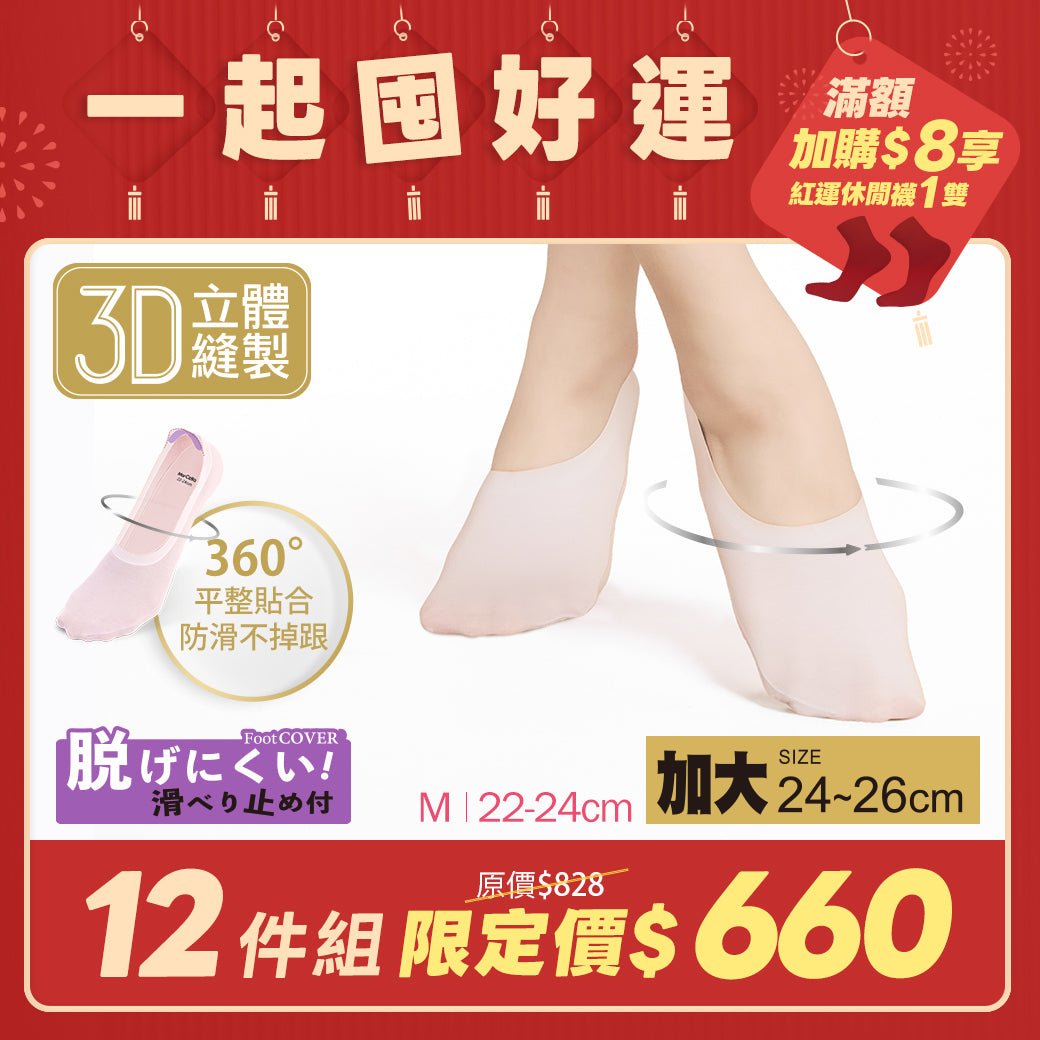 【12雙組-團購】3D立體縫製提耳防滑隱形襪