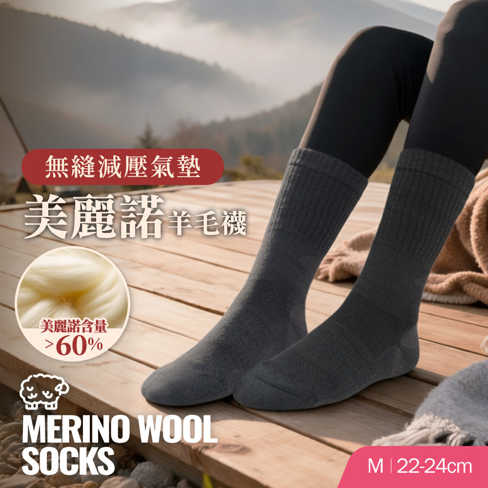 【羊毛襪-登山款】無縫減壓氣墊美麗諾羊毛襪-長襪