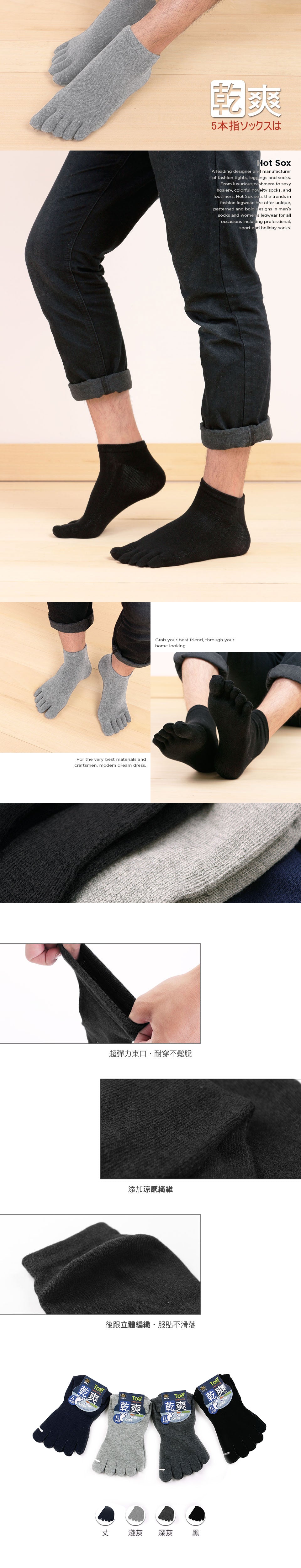 乾爽吸汗五趾襪-素面