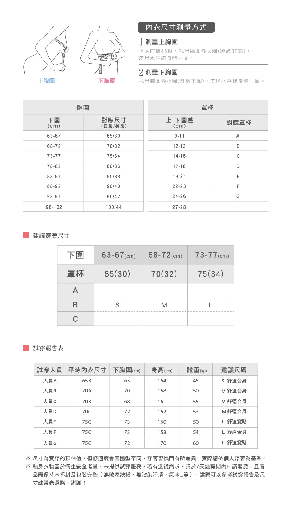 6. 為維持貼身衣物的彈性與舒適,請避免使用【非中性洗劑,例如:酵素洗劑/水晶肥皂/含氯漂白水/小蘇打...等成份】,建議選擇溫和的中性洗劑。首次清洗如有吐色或油感,為正常現象,沖洗乾淨即可安心穿著。