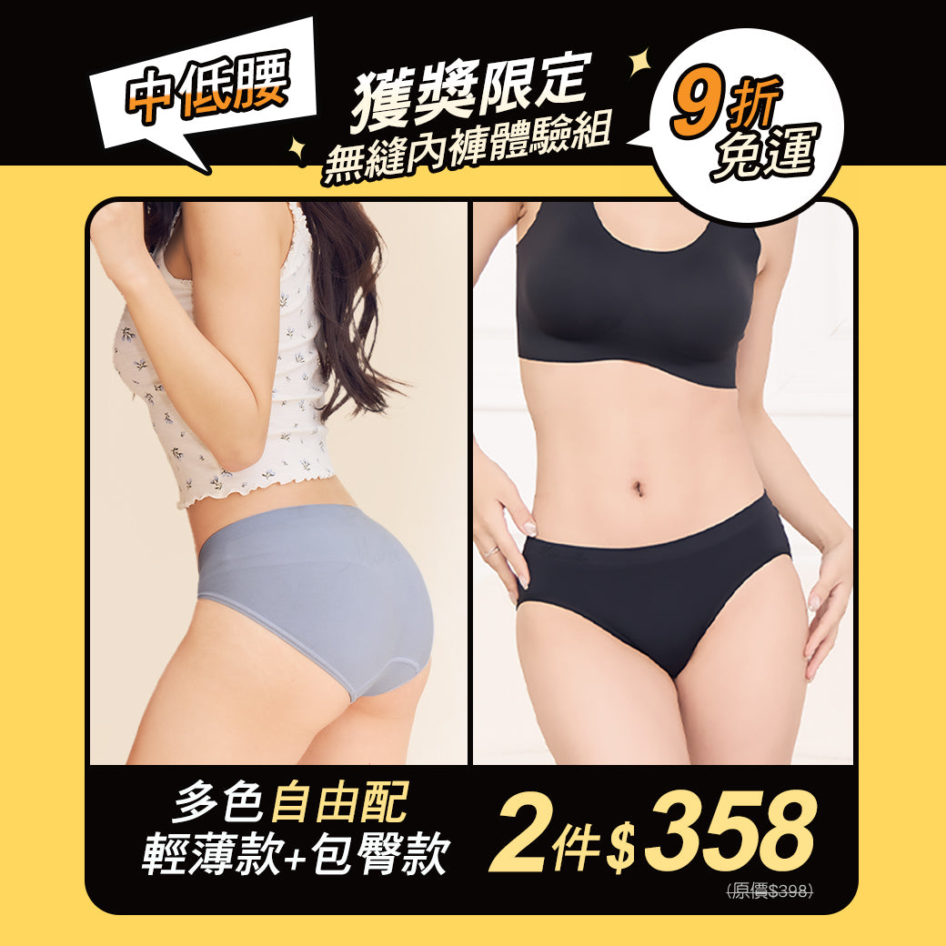 【獲獎限定】薄感+包臀 抗菌無縫內褲2件組-中低腰